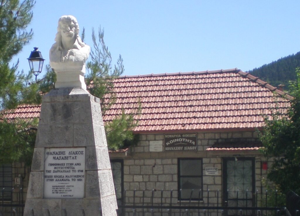 Ο Αθανάσιος Μασσαβέτας, όπως ήταν το πραγματικό επώνυμο του Διάκου γεννήθηκε στις 4 Ιανουαρίου 1788 στο χωριό μας, την Άνω Μουσουνίτσα, από όπου καταγόταν και ο πατέρας του Νικόλαος Μασσαβέτας. Σε ηλικία 12 ετών εστάλη από τους γονείς του στο μοναστήρι του Αγίου Ιωάννου του Προδρόμου της Αρτοτίνας όπου έγινε μοναχός και αργότερα χειροτονήθηκε Διάκονος, εξ ου και το προσωνύμιο «Διάκος».